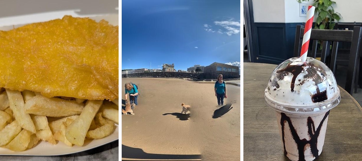 A great range of options from the menu, including vegan meals at a good price. We had to wait a while for our food, but it was busy and we respected that the staff were doing their best. We had exceptional customer service from the young lady with glasses and we couldn't recommend this place more! They are in a great location and the food tasted lovely. We had vegan battered sausage (you get 2x in the meal with a massive portion of chips) and some cheesy chips (also vegan!). At the end of our day in the town and on the pier we even went back and had an ice cream (nice variety of vegan options), which was a large portion as well!